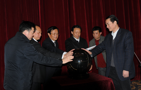 總經(jīng)理張春雷(左三)與荊州市領(lǐng)導共同啟動(dòng)水晶球 3月29日,枝江酒業(yè)與荊州新視界農村電影院線(xiàn)公司聯(lián)手,正式啟動(dòng)“知心知己枝江酒,…