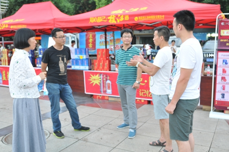 8月11日,枝江城區五柳公園繼續進(jìn)行微信掃碼贈酒體驗活動(dòng),吸引了更多的人前來(lái)參與。枝江酒業(yè)在活動(dòng)現場(chǎng)增加了工作人員,做好微信分享驗證工作的服務(wù),同時(shí)新增了苦蕎酒展示。在一天的酷熱之后,枝江城區居民出門(mén)納涼,信步于五柳公園,體驗微信掃碼贈酒,臉上露出開(kāi)心的笑容。而老百姓臉上的開(kāi)心笑容是一座城市最美的表情。
